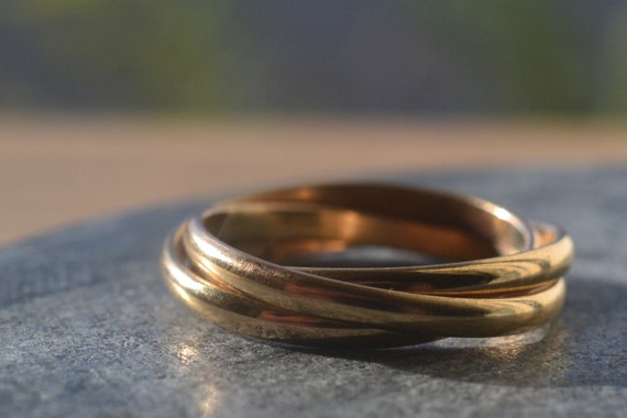 14k Yellow Gold Triple Band Russian Wedding Ring Interlocking Etsy