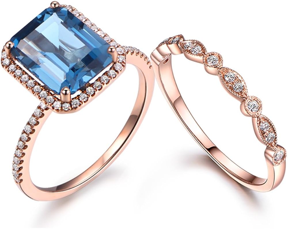 Amazon Com Myraygem Wedding Ring Sets 2 Natural London Blue Topaz