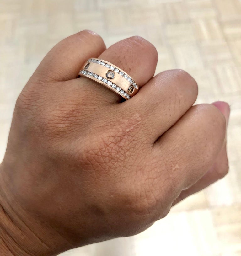 1 07 Carat Men S Champagne Diamond 14 Karat Rose Gold Wedding Band