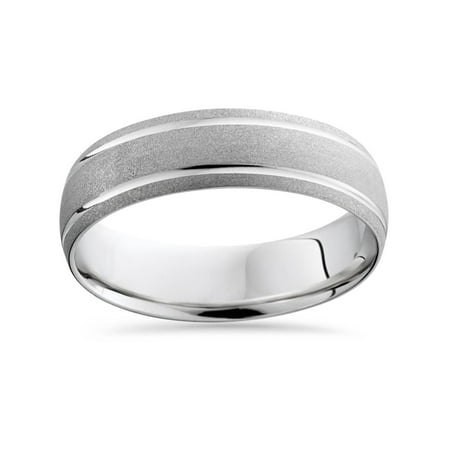 Mens Wedding Band In 14k White Gold 6mm Domed Matte Ring La More